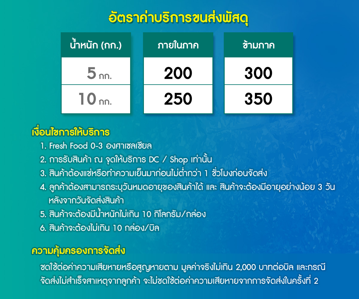 เงื่อนไขการใช้ บริการขนส่งสินค้า Fresh Food Service (กล่องโฟม) และการรับประกันสินค้า